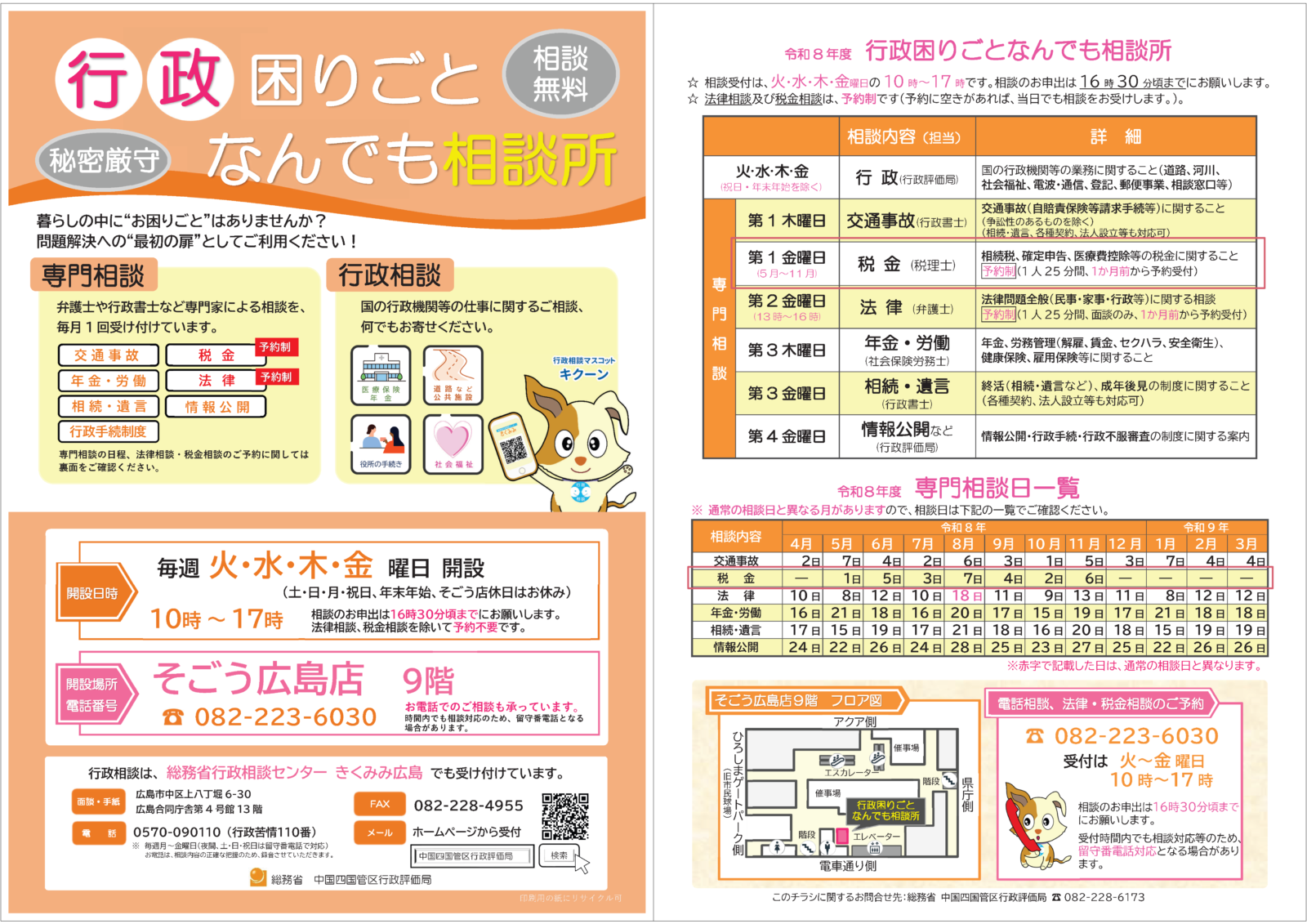 | 場所 | そごう広島店 本館9階 「行政困りごとなんでも相談所」 【広島市ホームページ】 |