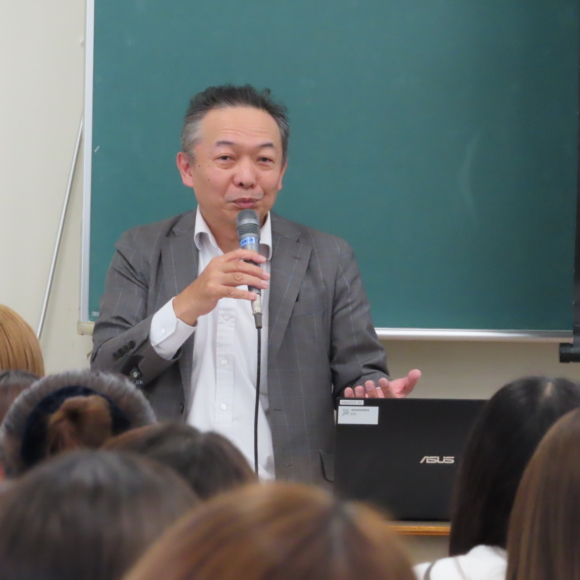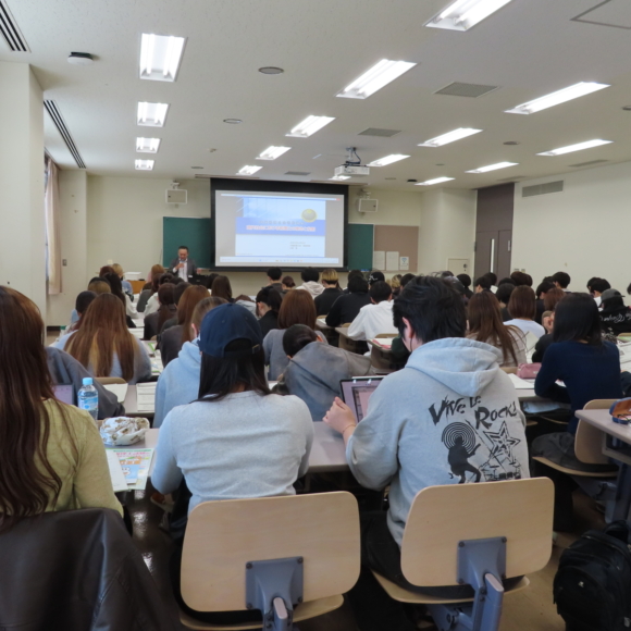 地域創成学部の3年生を対象とする「税務会計論」の15回シリーズの第一回目であり、中原教会員が講師を務め、「現代社会における税理士の使命と役割」をテーマに、税理士制度と高度情報化社会への対応、試験制度や税理士に求められている社会的役割など、自身の経験も交えて解説。最後に、税理士資格の魅力や、日商簿記資格が就職活動において有利に働く点など、学生にとって有益な情報も提供されました。